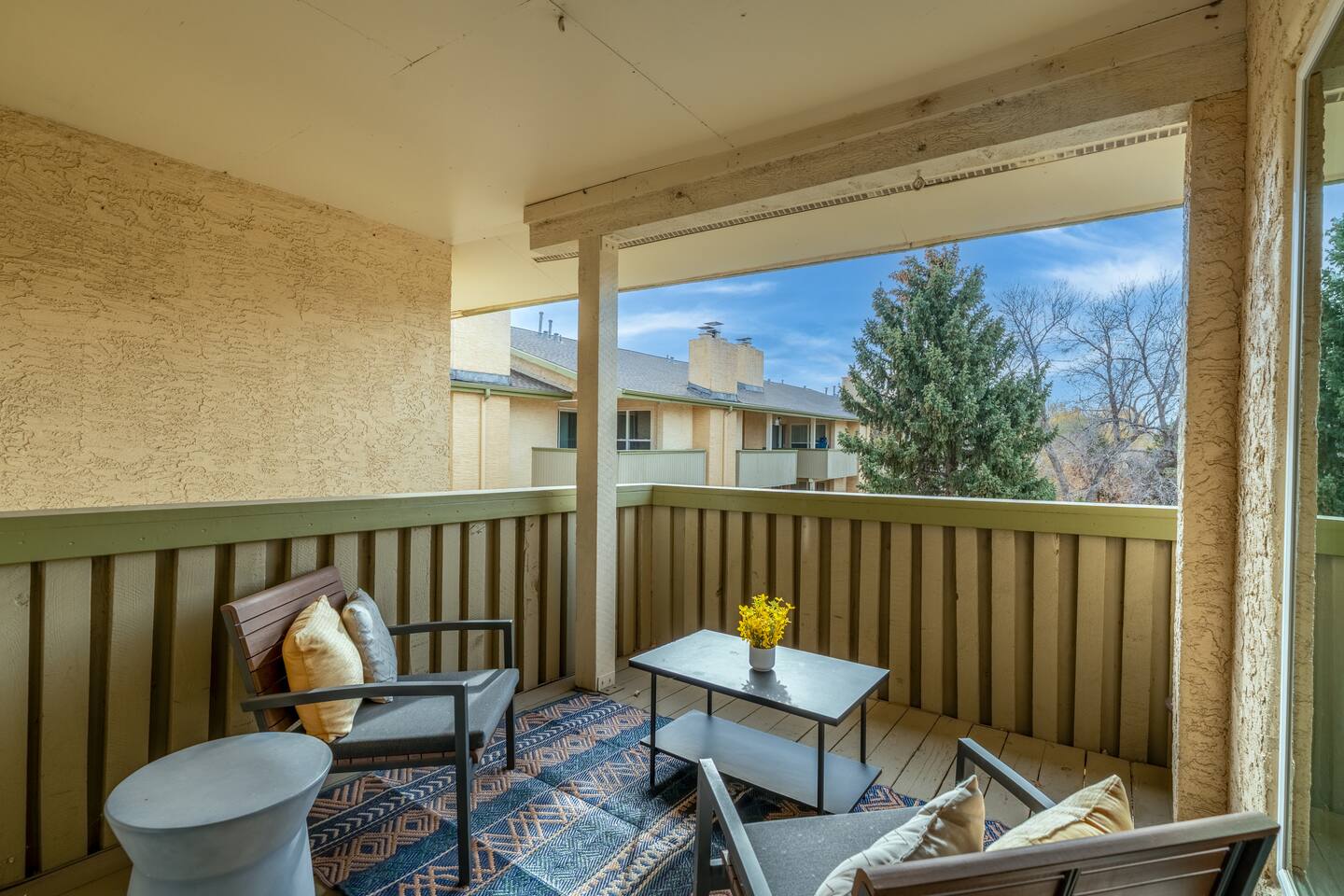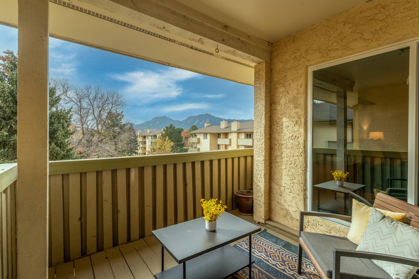 Welcome to your Boulder home-away-from-home! This spacious 2-bedroom, 2-bath condo offers 1,000 sq. ft. of comfort, style, and convenience—perfect for families, couples, business travelers, or adventure seekers looking to explore everything Boulder has to offer. Inside the Condo: Step into a bright, open-concept living and dining area featuring cozy furnishings, a flat-screen TV, and plenty of natural light. The layout is thoughtfully designed for both relaxation and functionality. The fully equipped kitchen includes all the essentials—stove, oven, microwave, dishwasher, coffee maker, and cookware—ideal for guests who enjoy cooking at home. The primary bedroom includes a comfortable queen bed, ample closet space, and an en-suite bathroom with a walk-in shower. The second bedroom also has a queen bed and easy access to the second full bathroom with a tub/shower combo. Both bedrooms are set apart from the main living space, offering privacy and quiet. You’ll also find a small balcony—perfect for morning coffee or evening wine while enjoying Boulder’s fresh mountain air. Complex Amenities: Guests have access to a seasonal outdoor pool, hot tub, fitness center, laundry facilities, and walking paths around the community. Free parking is included, and the complex is quiet and safe with beautiful mature trees and open green spaces. Location Highlights: Situated in a central Boulder neighborhood, you’re just a short drive or bike ride from downtown and the University of Colorado. Enjoy easy access to iconic spots like the Flatirons, Chautauqua Park, Boulder Creek Path, and Pearl Street Mall. You’re also close to grocery stores, local coffee shops, breweries, and public transport. Whether you're here to hike, ski, shop, dine, or just relax, this condo offers the perfect launchpad for your Colorado adventure!